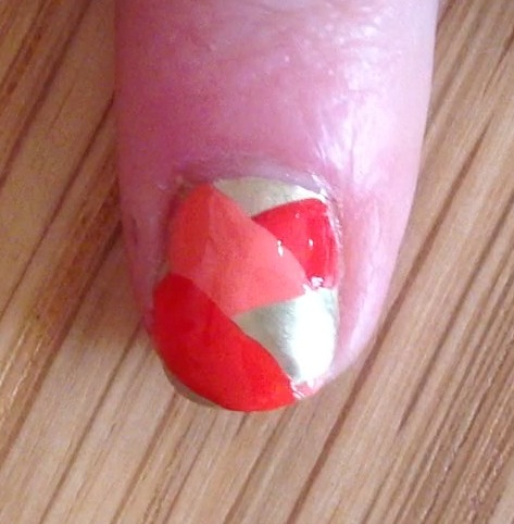 Using colour 2, create a diagonal line from one top side of the nail to the other side.